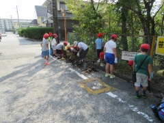 1~3年生が校外に出てごみや葉っぱを集めました。