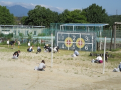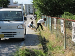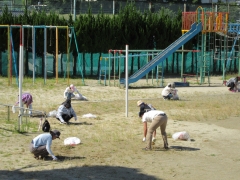 運動会の徒競走のコース上に生えた草を丁寧に抜いていただきました。