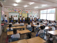 朝の時間に応援団の係の子どもが各クラスをまわっていました。