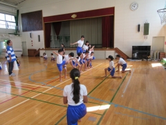 5年生が団体演技の細かい動きを確かめていました。