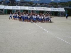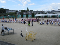 全体練習を行いました。縦割り班のリレーと綱引きの練習です。
