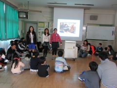 5年生は、韓国、ギリシャ、ボリビア、フィンランド、アラブ首長国連邦、モンゴルなどたくさんの国と日本との文化の違いを〇✕クイズで出題してもらいました。