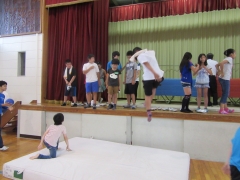 グループになってトランポリンで跳んだり、セフティマットに飛び降りたりしながら共に活動を楽しんでいました。