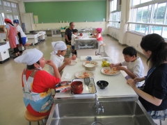 グループで協力して、ピザつくりに挑戦です。