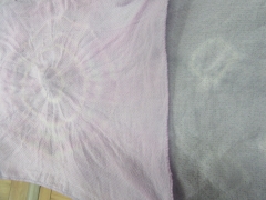 絞りを入れたハンカチをぶどうの皮の煮汁に浸しています。