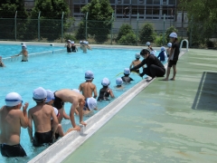 1年生がはじめてプールに入りました。