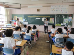 3年生が夏休みにがんばったことと今後に生かしたいことについて発表していました。様子を参観していた校長先生にもがんばったことを聞いてもらいました。