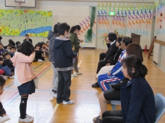 笹川西小学校を去られる先生一人一人に代表の子どもが思いを伝えました。