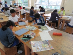 5年生が木版画をつくっています。