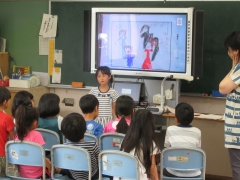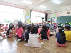 学年で集まり、トイレの使い方、廊下の歩き方、牛乳パックの使い方、下校の仕方などについて振り返っていました。