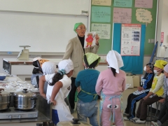 会長さんから「鬼まんじゅう」の名前の由来やサツマイモの話を分かりやすく伝えていただきました。