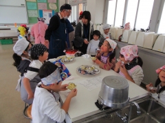 優しく手を添えて教えていただきながら、皮をむいたり、切ったりしました。