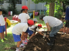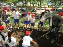 興農社の方をゲストティーチャーにお迎えし、冬野菜の種まきや苗植えを行いました。