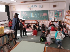 市教育委員会の英語指導員のみなさんと折り紙を作ったり、本を読んでもらったりして過ごしました。