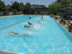 はじめは水に顔をつけることを戸惑っていた子どもが少しずつ慣れていく様子も見られました。