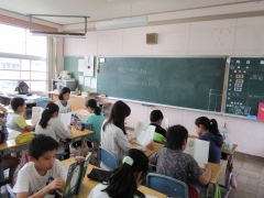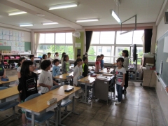5年生はお隣同士で音読をしていました。