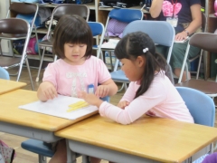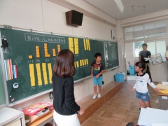 バラバラに並んでいるブロックを早く正確に数える分け方をペアで考えました。