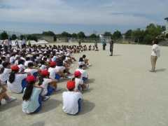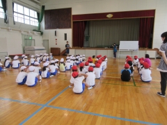 1、2年生が体育館に集合していました。