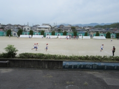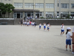6年生が運動場で走っていました。