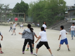クラスで仲良くドッジボールを楽しんでいます。
