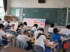 6の2は担任が出張で自習でしたが、子どもたちは社会の勉強のまとめを集中して取り組んでいました。
