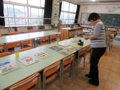 20分休みに図書館司書の方によるブックバイキングが行われました。