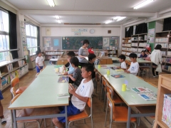 普段よりたくさんの子どもが図書室を訪れ、本を手に取っていました。