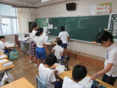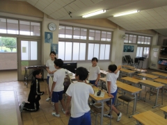 3.4年生は早くも外に出て、移動する場所を確かめていました。