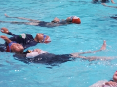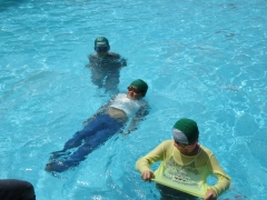 落ち着いて息をしっかり吸いためることや衣服に空気をためることで体が浮くことを学びました。