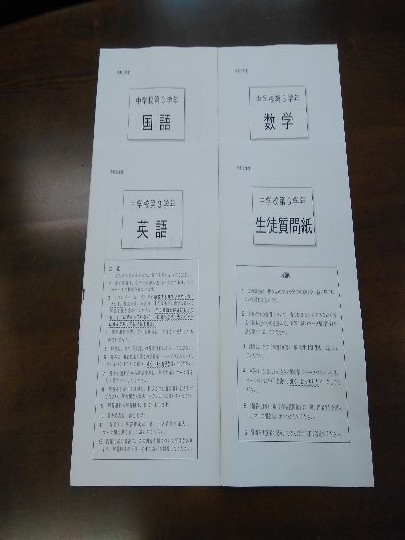 本日、3年生は全国学力・学習状況調査に取り組みました。生徒たちは思考力・読解力を要する歯ごたえある問題と最後まで粘り強く向き合っていました。後日、文部科学省で集計される結果を分析し、授業改善に生かしていきたいと思います。