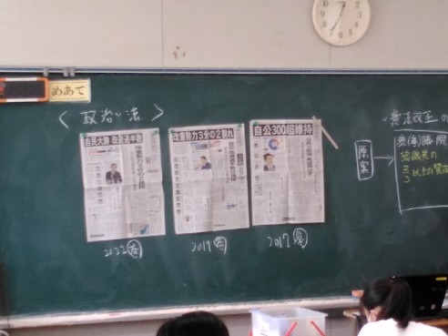 3年生社会 新聞の見出しから政治の動きを読んでいます