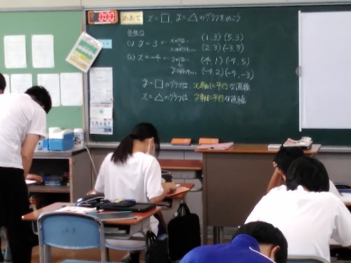 2年生数学 x=□ y=△のグラフについてのまとめを進めています