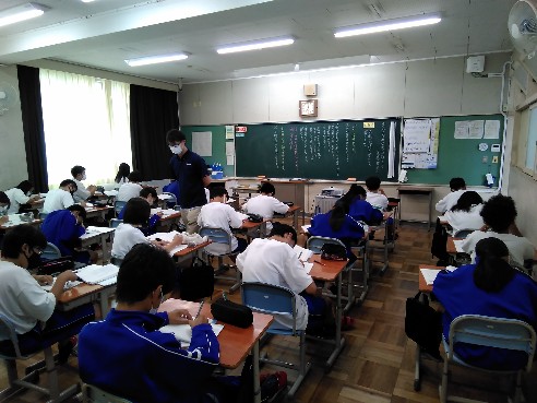 今日は熱中症警戒指数が「厳重警戒」に達する暑い一日となりました。部活動実施日であれば中止を検討しなければならなかったと思います。このような暑さでも教室ではエアコンのおかげで快適に授業ができ、改めてありがたさを感じております。