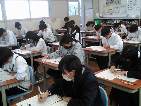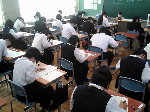 年生の教室の鉛筆の音が一番大きく感じられました。今回はテストが終了すると翌日が休日ですので、そこを目掛けて頑張ってほしいと思います。それぞれの健闘を期待します。