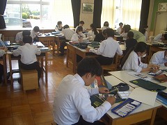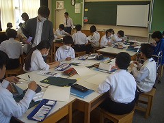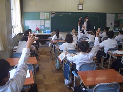 理科の時間は先生の質問に対して、元気よく挙手して答えている姿が見られました。