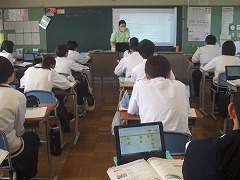 保健・体育の時間はスポーツの意義について、タブレットを使った意見交換を行っていました。