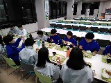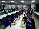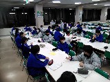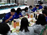 7時前に夕食が始まりました。スキーでお腹が空いたようで、さっそく味噌汁とご飯をお代わりする姿がみられました。笑顔があふれ和やかな楽しい一時でした。