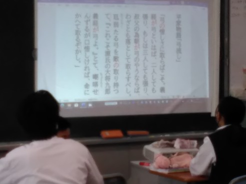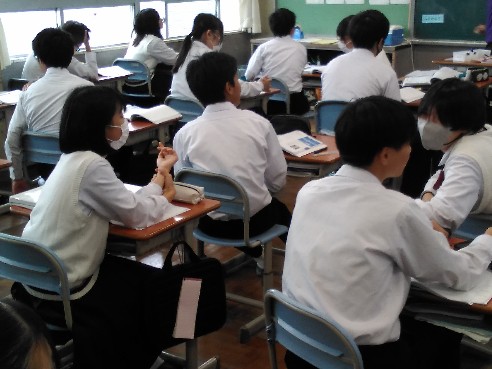 3年生国語は、「初恋」(島崎藤村)を鑑賞しました。既習の童謡「ふるさと」や「平家物語」の一節を思い起こしながら古くて新しい文語定型詩の世界に浸り、授業の終末、それぞれが詩を味わってひたすら音読する姿が見られました。