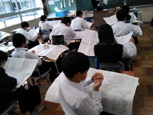 1年生社会は、弥生時代の人々の暮らしについて考えました。もみの跡がついた土器などの出土から稲作が行なわれていたことに納得の様子でした。三泗地域の遺跡地図を見ながら、弥生時代の人々の暮らした場所を確認していきました。