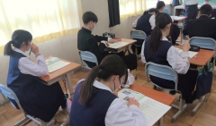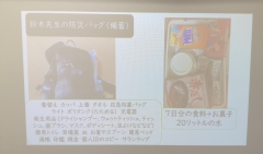 学習するクラスもありました。担任の先生自身が備えている防災グッズも紹介されて、防災意識がより高まりました。
