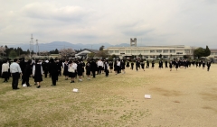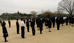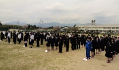 4/9(木)4限目、避難訓練を行いました。全校生徒が素早くグランドに移動することができていました。校長先生の講評では、「日頃から地震に対する心構えをしっかり持ち、いざという時の備えをしていこう。」というお話がありました。その後、各教室で、防災ノートを使用して、地震に対する知識・避難の仕方などを学びました。また、タブレットを