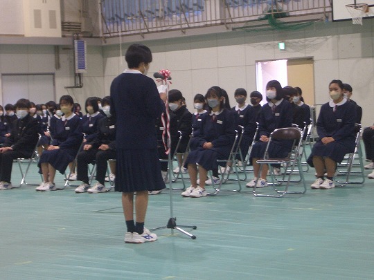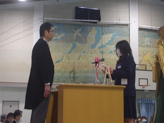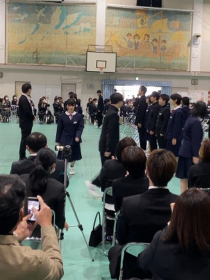 本日、お招きできなかった関係の皆様方に、お詫びととともに常日頃より生徒たちを温かくお見守りいただきましたことに対しまして感謝申し上げます。
