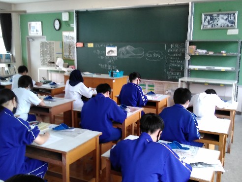 3年生美術では、自分のスリッパのスケッチに取り組んでいました。身近なものですが、あまりじっくりと見たことはなかったと思います。それぞれの捉えた感覚で材料の性質や質感が伝わるように表現した作品が見られることを楽しみにしています。