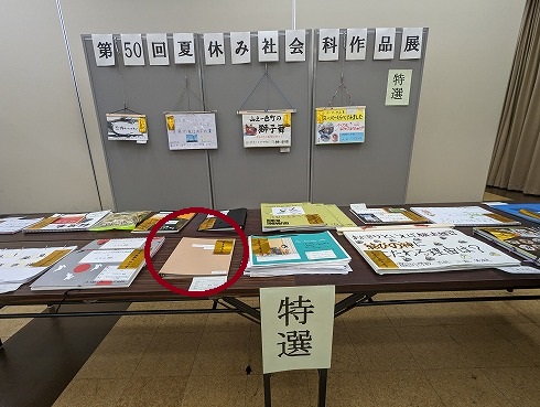 11日(土)・12日(日)、アスト津で第50回三重県社会科教育研究会夏休み作品展が開催されました。県各地域から選出された471(うち中学校157)の応募作品の中から特選(県教育委員会賞)に輝いた本校2年生の研究「どうして水沢の人口は少ないのか~水沢が活性化するために~」も展示されていました。