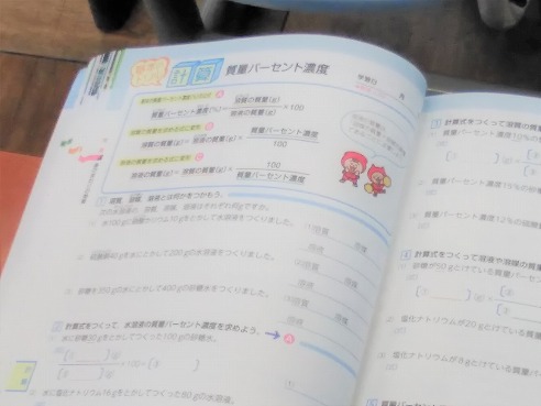 1年生理科 水溶液の濃度や溶けている物質の量を計算で求めています