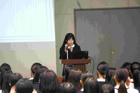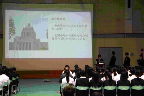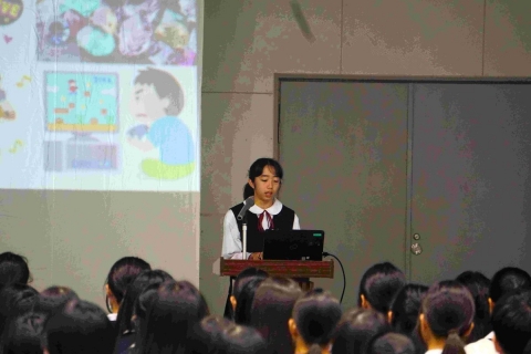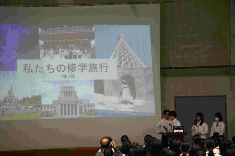 1、2年生のヴィジョンボードの発表、3年生の修学旅行についての発表でした。