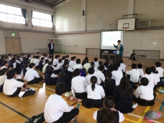 今日の土曜授業、1年生は体育館で「ネットモラル教室」を行いました。