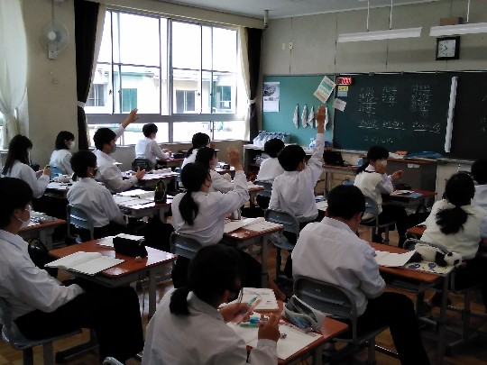 1年生は中学校の教科担任制にもすっかり慣れ、日々、中学生らしさを増しつつあります。どの教科においてもよく手が挙がり、生き生きと学んでいる様子もうかがえます。友だちの意見をしっかり聞いて、うなずき合ったり、笑いあったりすることができる素直でしなやかな心を忘れずに、3年間を過ごしてほしいと思います。