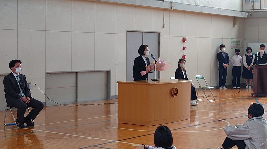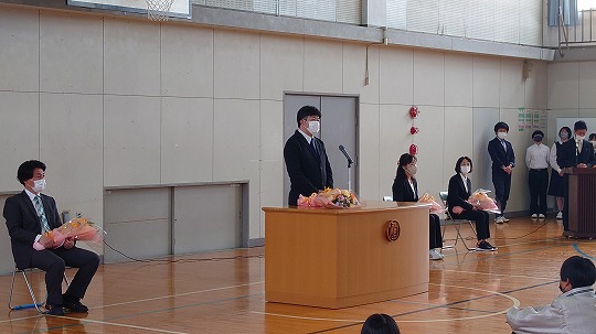 修了式に引き続き、今春の人事異動で転出する教職員の離任式を行いました。