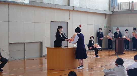 保護者の皆様方、地域の関係者の方々におかれましては、一年間、本校教育活動にご理解、ご協力をいただき誠にありがとうございました。次年度も生徒たちを各家庭や地域で温かくお見守りいただきますよう、引き続き、お願い申し上げます。